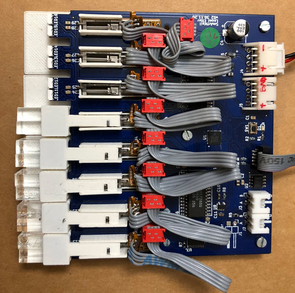 Below is a controller board without the optional components. The flat cable provides the signals to the shift registers:
