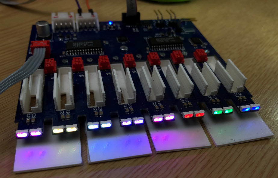 On the plus side: we had found a way to reduce the space needed by each motor and pixel by directly connecting the motor signals to the PCB.