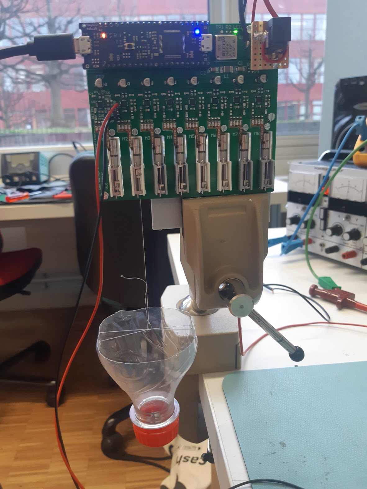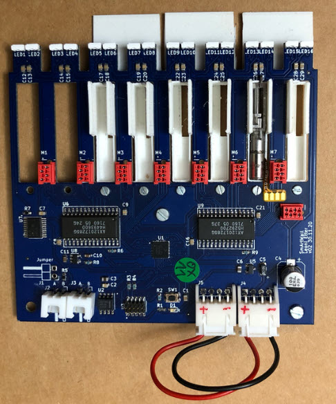Below with the PCB with the connected motors:
