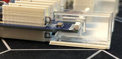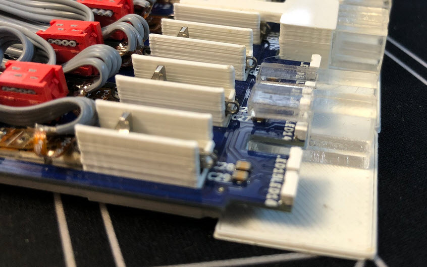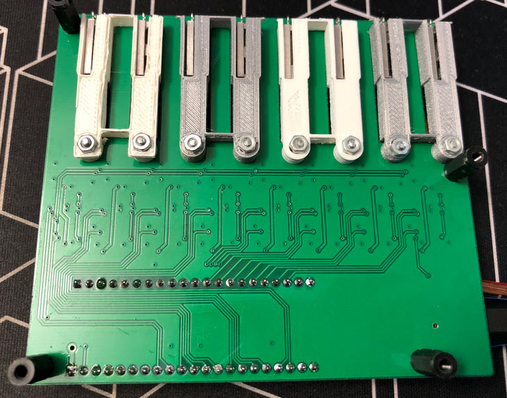 Below a view of the top PCB, with the 3D printed parts: