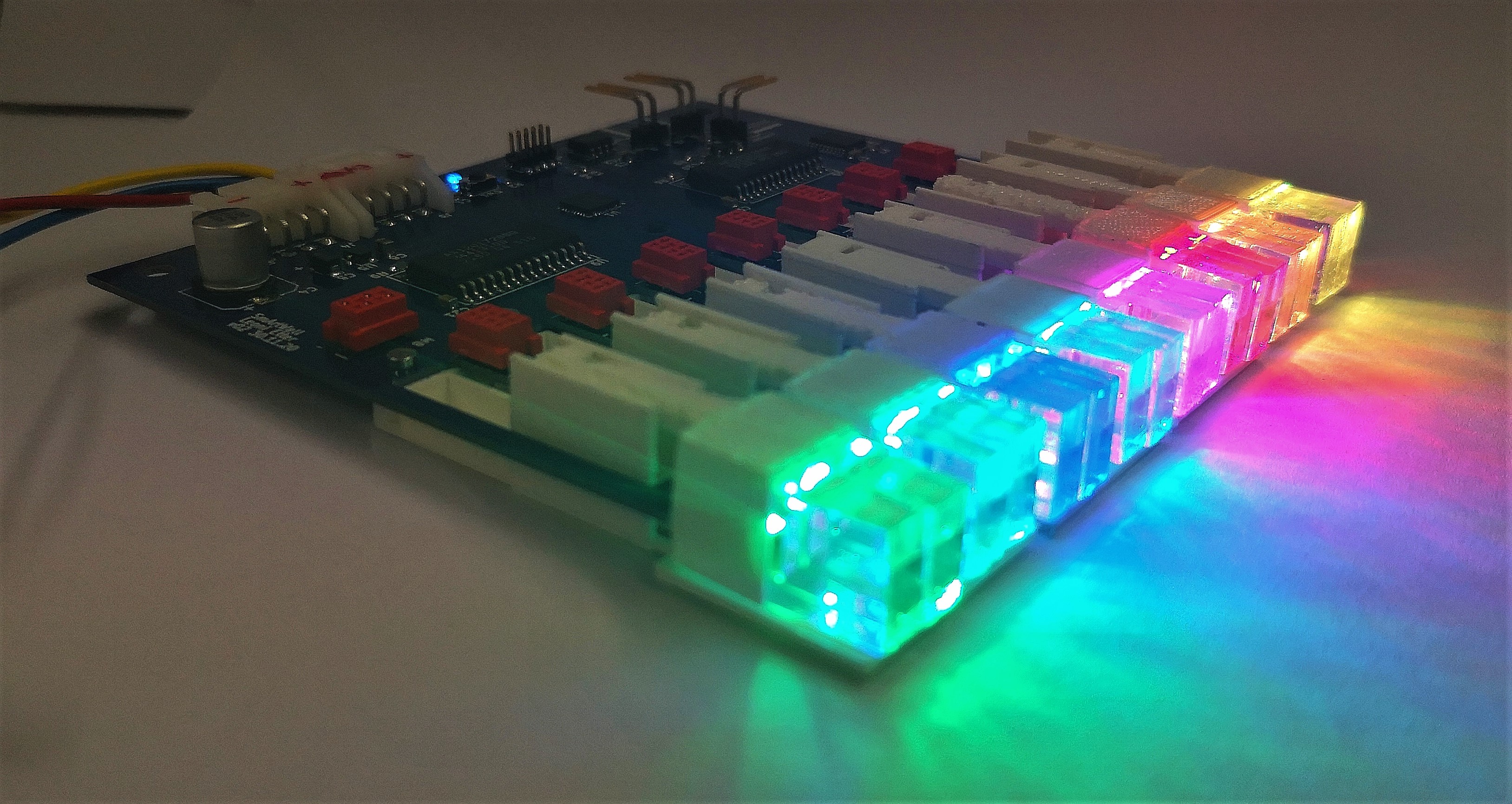 On the plus side: we had found a way to reduce the space needed by each motor and pixel by directly connecting the motor signals to the PCB.