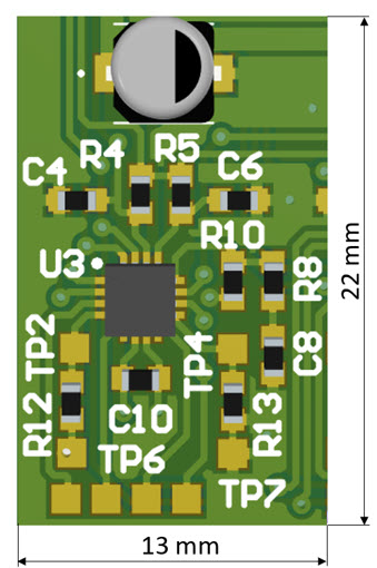 Space needed for the driver circuit was a concern, but it is possible to fit the electronics inside an area of 22×13 mm: