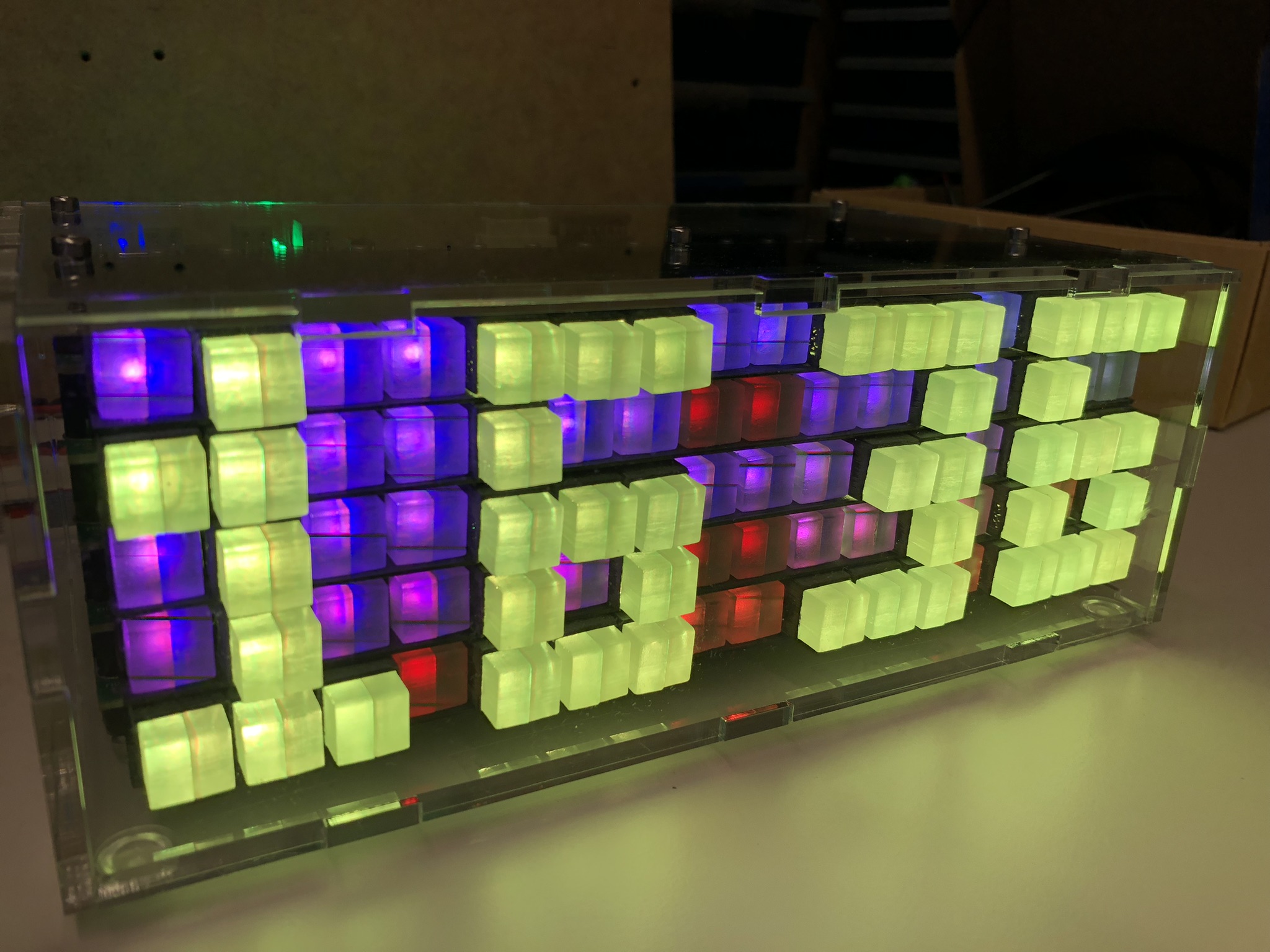 Many thanks for your contributions to the project, nice to hear from you! There are some ideas how to reduce the space needed by the driver PCBs (could be smaller by about 20%). That way it would be easier to mount it on a wall. The clock is now working for months and so far everything is working fine. Additional pixel animation patterns are in the work too, beside of creating a laser-cut enclosure.