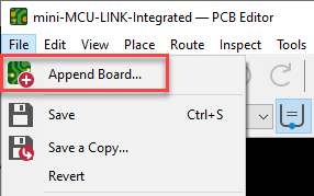 For the layout, use File > Append Board in the PCB editor: