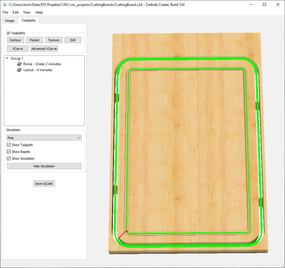 For the cutting boards I use 20 mm oak sheets, and cut them with my desktop CNC.