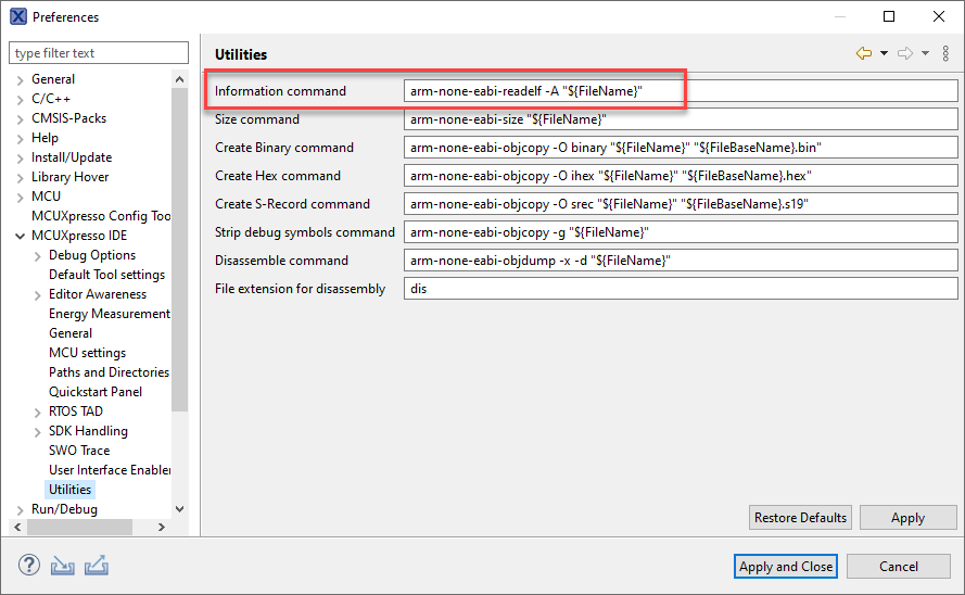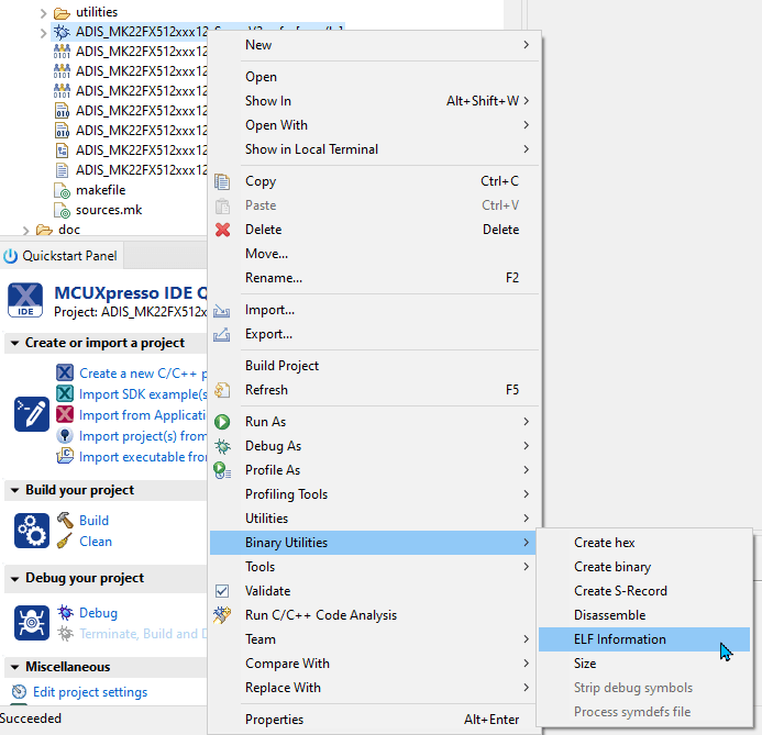 The NXP MCUXpresso IDE has even a context option to run readelf on a file: