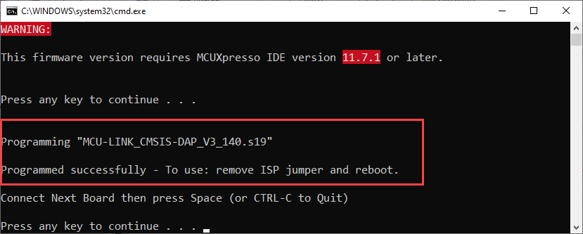 Now connect another probe in ISP mode, or press CTRL-C to quit.