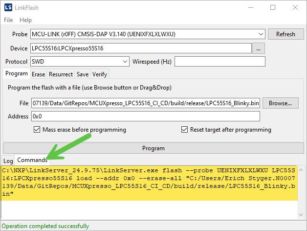 The ‘LinkFlash’ or GUI flash programmer is a great extension and feature of the LinkServer. Common tasks like programming are easy to use. I really like the way how it gives me the command line options for the different tasks. That way I can use the GUI for what I want, and then copy-paste the command line into my scripts.