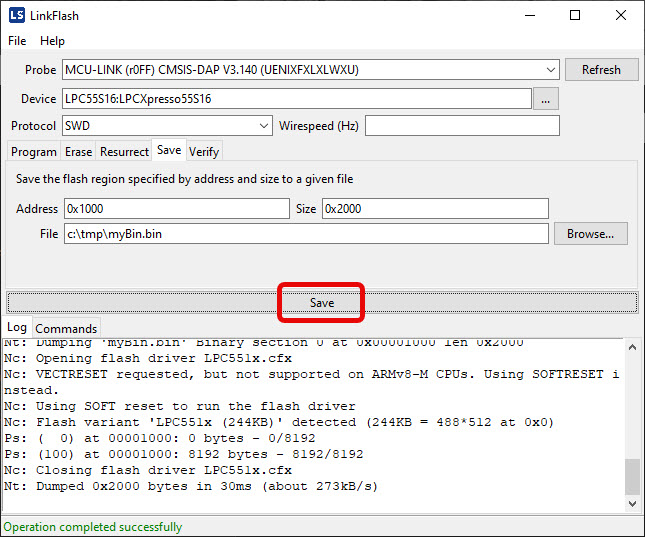 With the ‘Save’ function I can read the device memory and save it to a file: