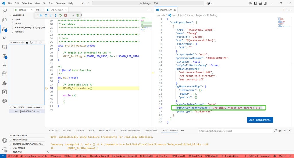 The proposed approach works both for an external NXP MCU-Link debug probe, as well for OB (on-board) MCU-Link probes, for example with a NXP FRDM-MCXN236: