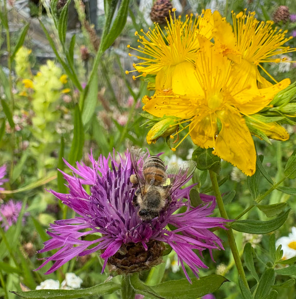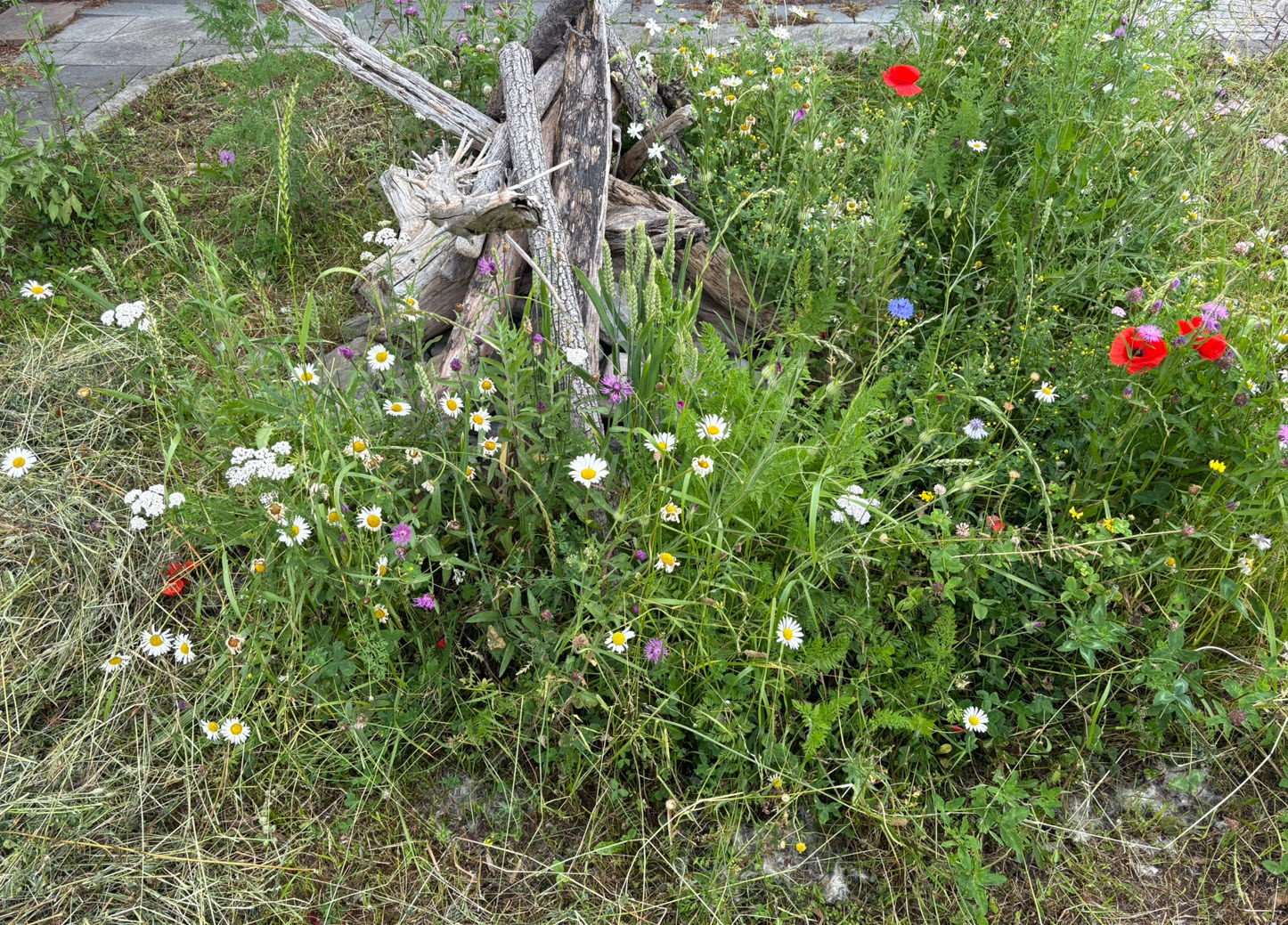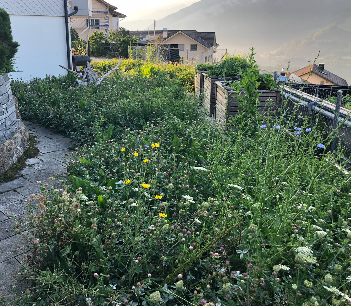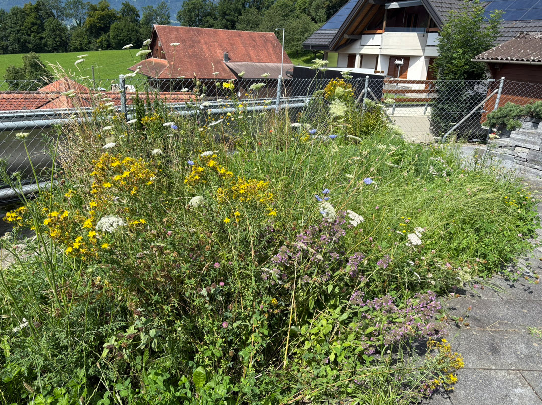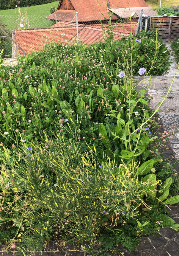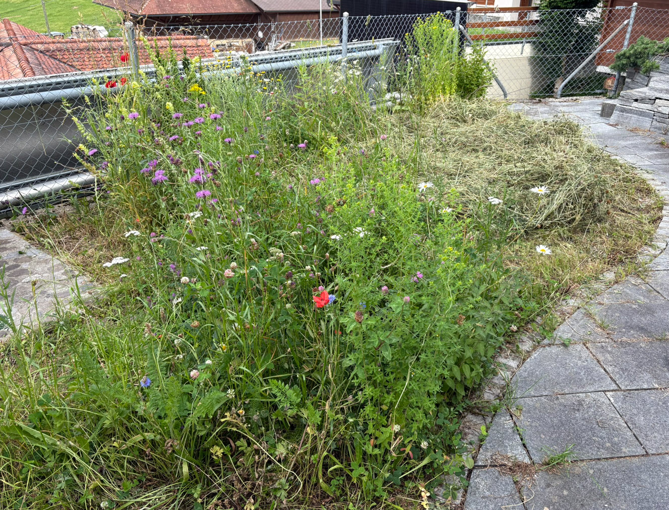 • Climate in Switzerland seems to get more extreme too. With more and longer dry periods, then lots of rain again. Or with a hail storm as of last night. When we created the lawn over 20 years ago, we buried some watering pipes ‘just in case’. We never had to use them. But looking at the recent 3-5 years, for having a green lawn they would be necessary, at least for some weeks during summer time. With that flower meadow, we only had to water it for a few days back in 2022, for the time after seeding it, so it does not dry out too much. Since then, no watering was needed. What I like with the meadow is that it seems to adapt to the climate quite well. And as you mention: it very rewarding to see things growing.