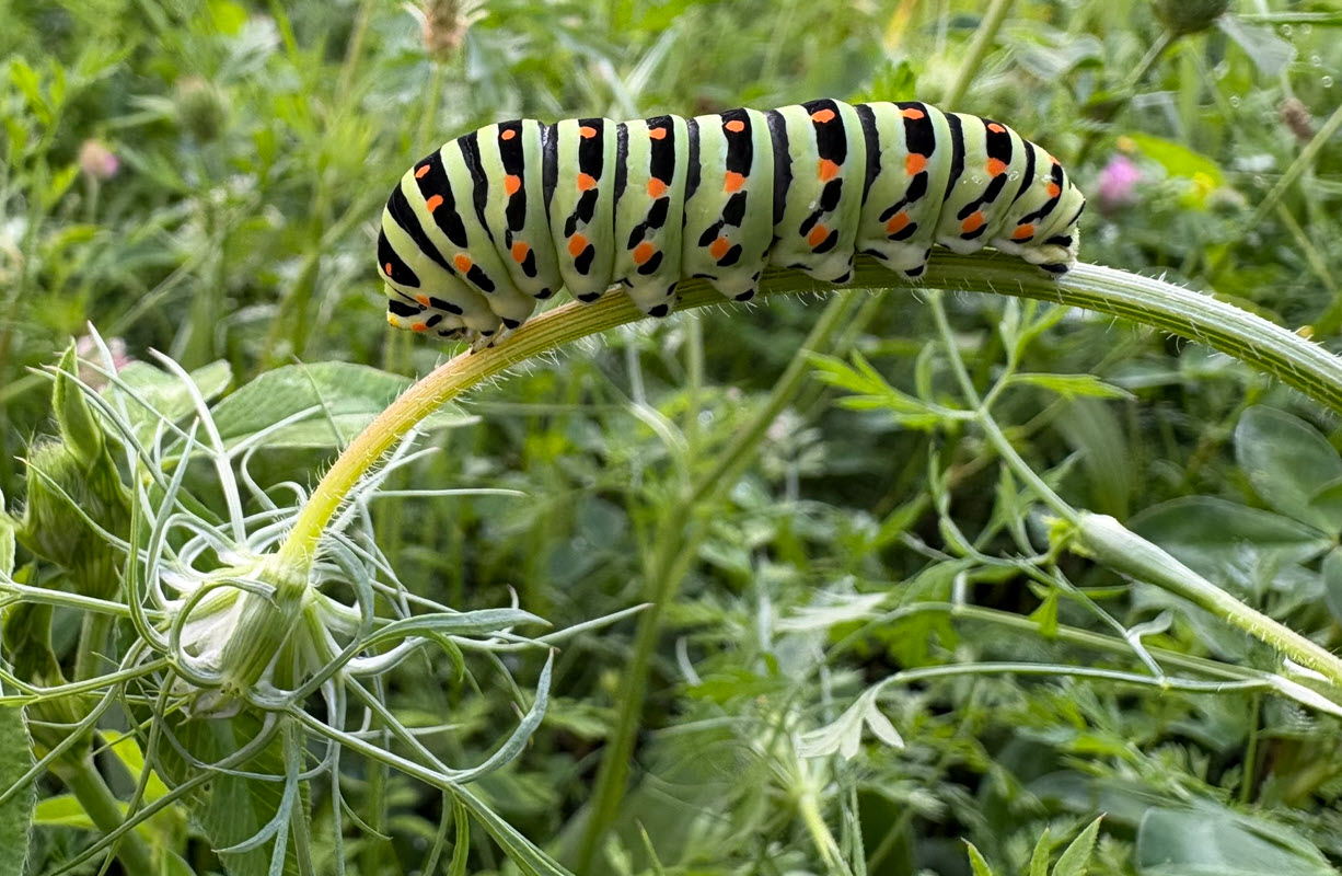 Compared to the ‘lawn’ time it is definitely more work. But it is very rewarding, enjoyable, and every week brings something new. The last few days we saw dozens of Swallowtail butterfly every day. In the past we were lucky to see just one in a year. We had no idea from where they are coming. Just today I have found that big fat Swallowtail caterpillar (showed above) at the stone pile in the meadow. I guess that’s the answer :-).