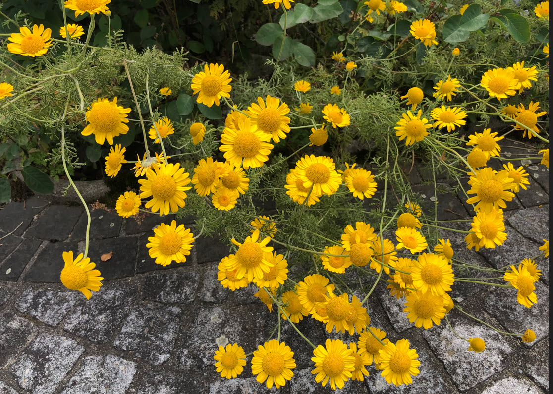 The ‘Golden Marguerite’ is known as ‘Färber-Kamille’ (dyer’s chamomile) in German.This because it was used once a natural yellow dye to color textiles, especially for wool. It is not the same chamomile as used in teas, it has been used to treat minor illness.