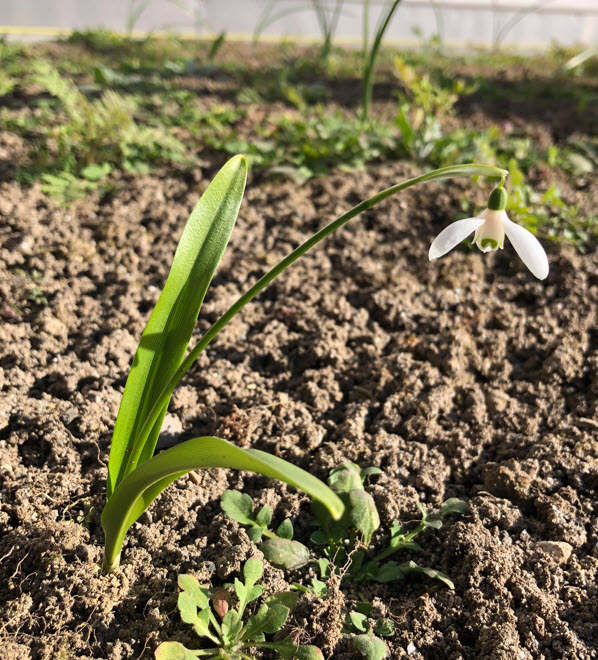The snowdrop or Galanthus Nivalis is among the earliest flowering plants of the year. It often blooms in late winter or very early spring. It can even bloom through snow. This is how it got its name. “Nivalis” means “of the snow” in Latin.