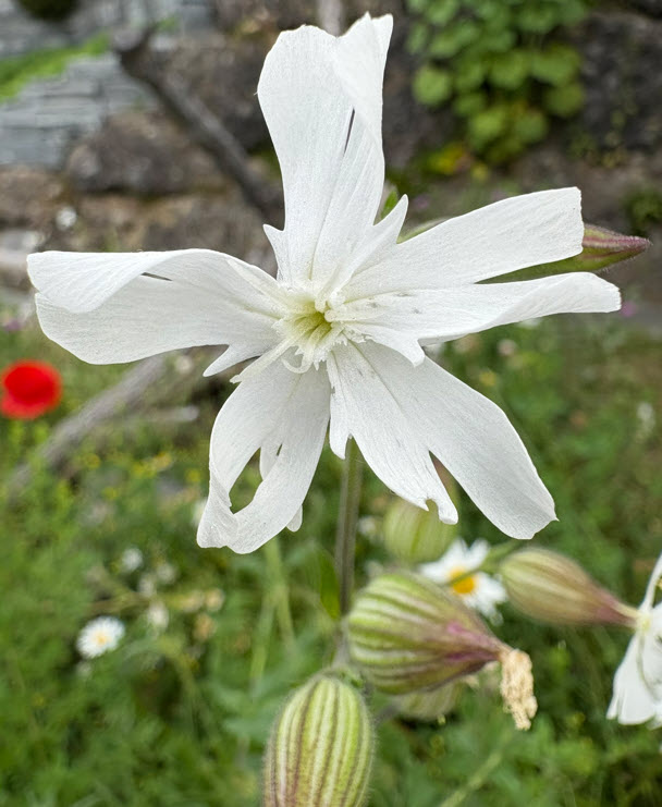 The flower builds a kind of balloon: if you press it, it gives a ‘pop’ sound. That’s where the German Name ‘Klatsch-Nelke’ comes from. ‘Klatschen’ in the sense of ‘clapping’.