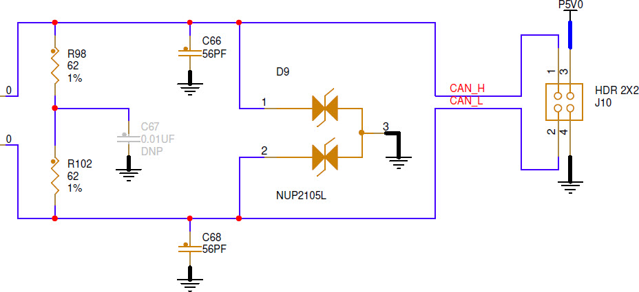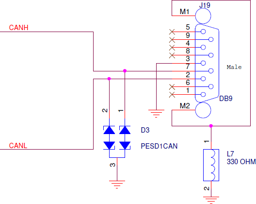 CAN Connector on LPC55S16-EVK with CANH and CANL (Source: Schematics/NXP)
