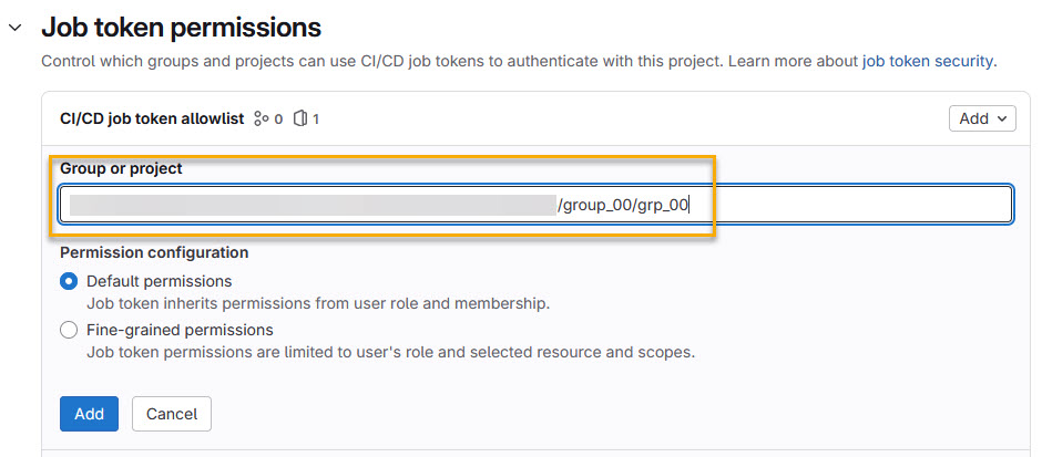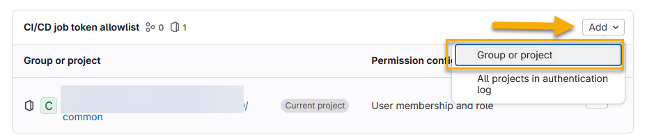Add a new permission entry with the ‘Add‘ button, and select ‘Group or project‘: