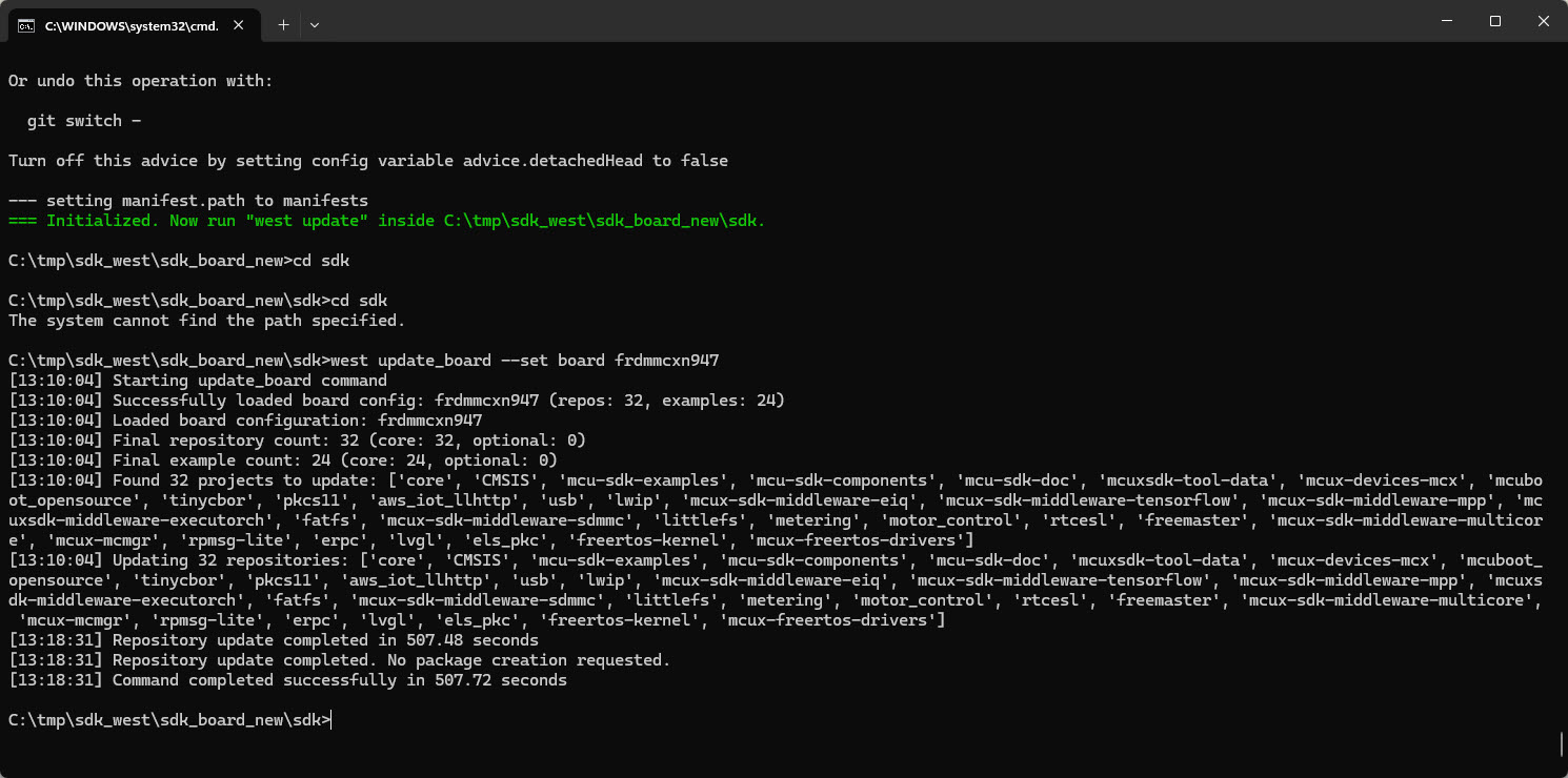 💡 at the time of writing this article, the v25.12.00 version of the manifest is broken with referencing non-existing repositories for the FRDM-MCXN947. The workaround is to remove