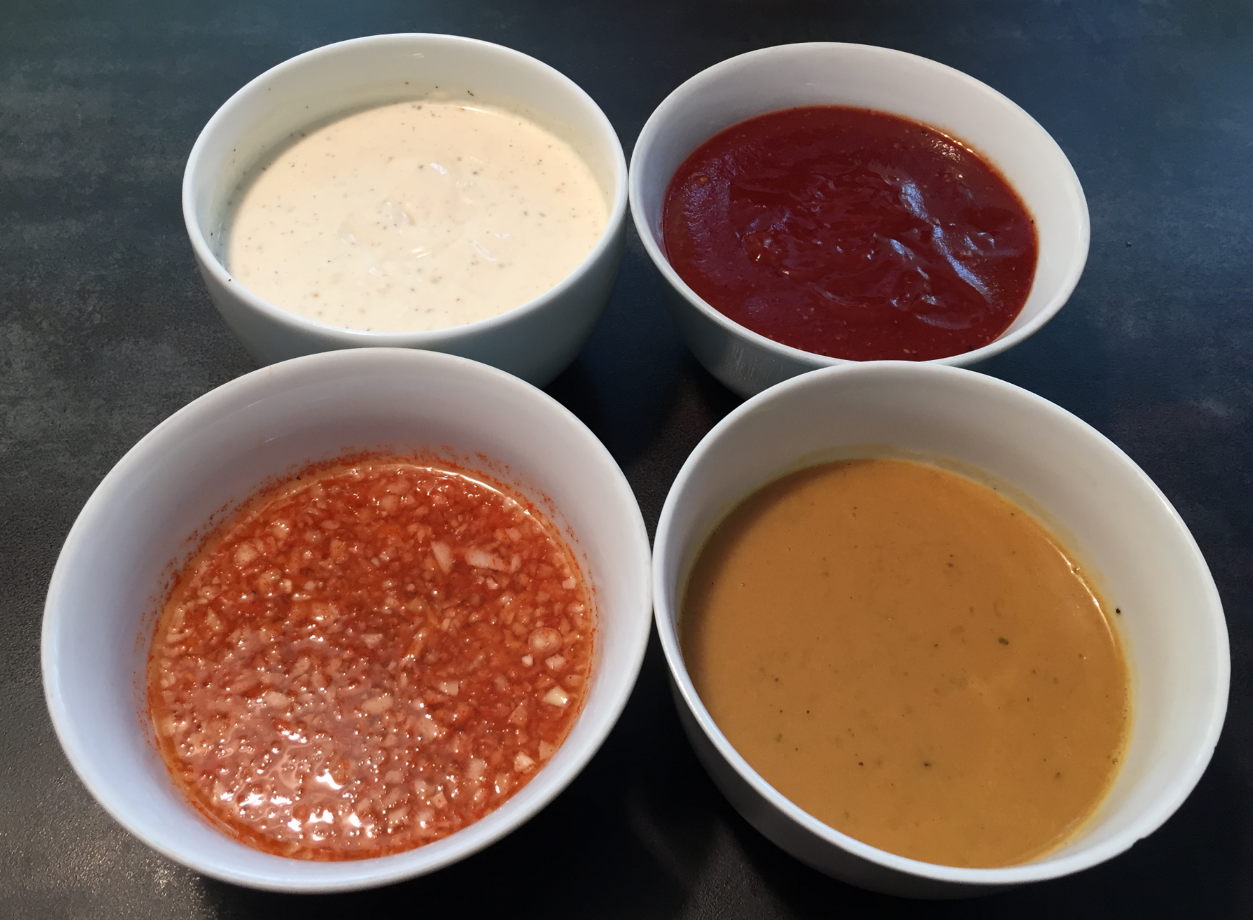 It seems that my pulled pork BBQΒ (see “Tutorial: BBQ Pulled Pork“) gets more and more fans :-). We will have a BBQ party for 10 person tomorrow evening :-). In preparation for that, the two pork shoulders started brining in the refrigerator from yesterday night on. Today we prepared the BBQ sauce for tomorrow, in four different styles: North Carolina, South Carolina, Alabama and Kansas: