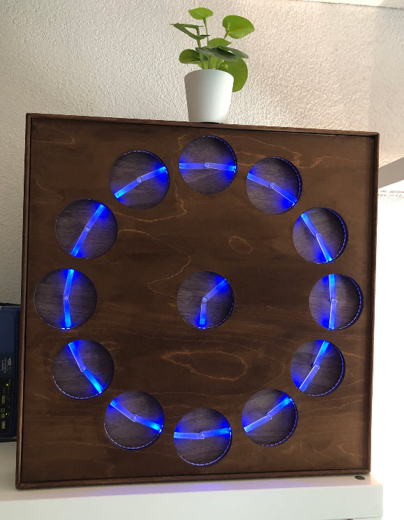 It has been a while since my last MetaClockClock, and with the continued shortage of electronics on the market I had no chance to order new parts. But I still had some remaining parts, and with the modular design of the ’round’ clocks I was able to build up another one, but this time with even less than the usual minimum of 24 clocks: