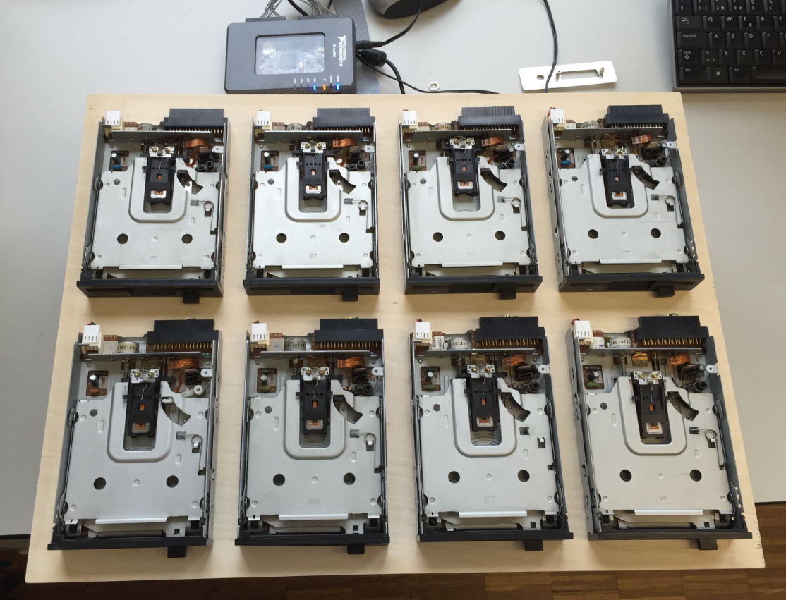 3.5″ Diskette Drives are not widely used any more: CDs, DVDs, memory/thumb drives and downloads from the web are the usual distribution method these days for software. Back a few years ago, software was distributed on one or many 3.5″ diskettes, and even before that time on 5 1/4″ floppy disk drives. So what to do with all these not-used-anymore hardware? Play music with it π