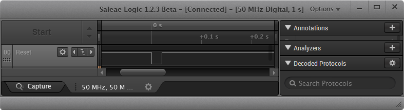 The reset and signal line of a microcontroller is probably the most important signal to a microcontroller. And if things go wrong, then a first thing to check is the reset line. So having control over reset is an important aspect for embedded development. You would think that if you download a program to a microcontroller, the debug probe would put the device into reset at the start with a short pulse like this: