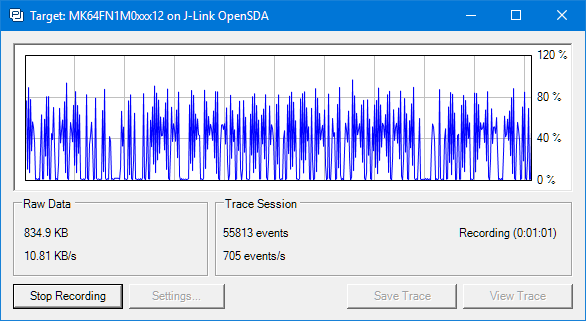 But what worried me for several weeks is that after moving to FreeRTOS V10.0.0 and the same time updating the Segger libraries, the target performance was heavily affected: